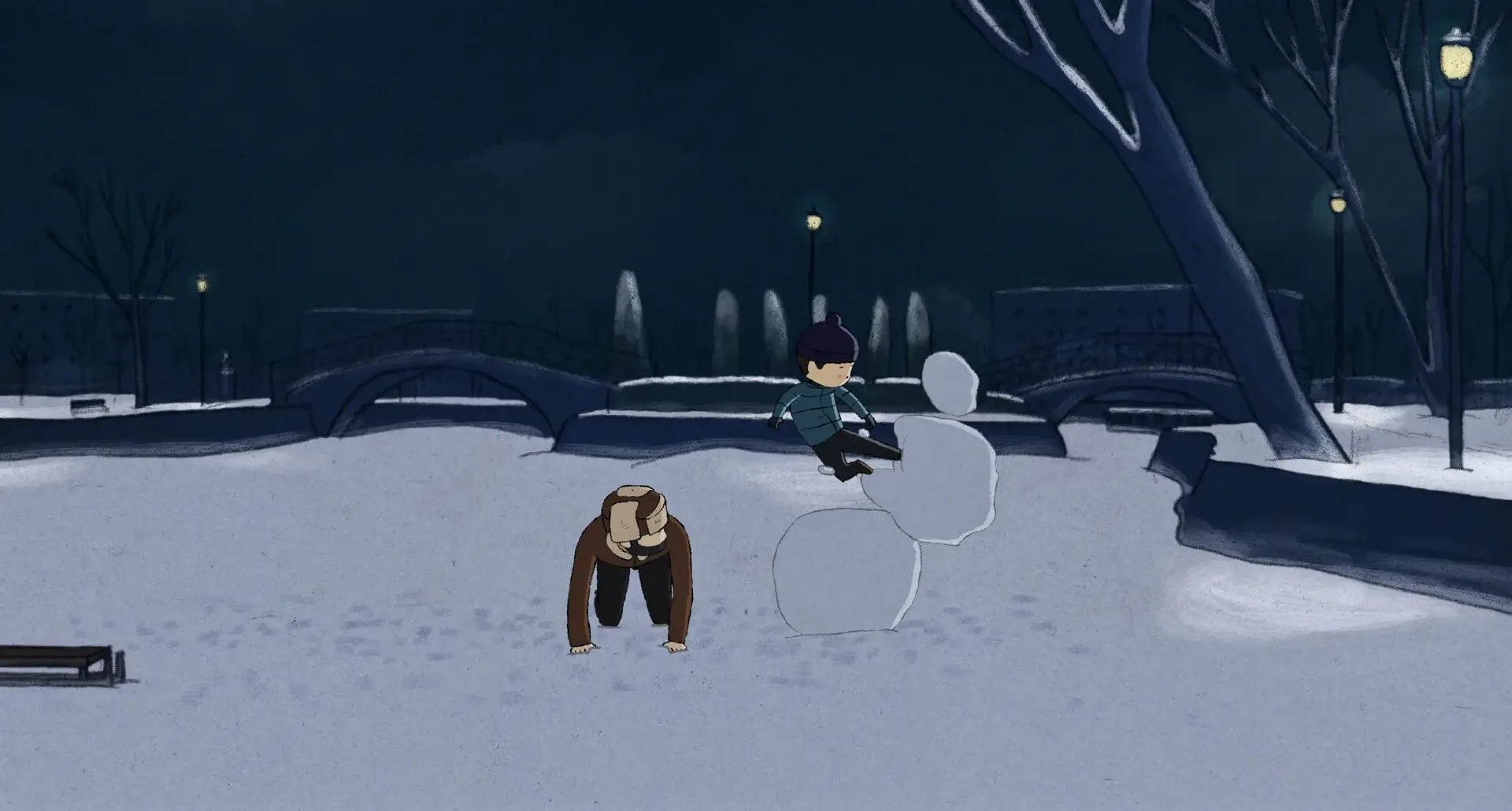 Zobaczywszy człowieka leżącego w śniegu, pewien chłopiec przypomina sobie noc spędzoną lata temu z ojcem. Zabawa z tatą przybiera niespodziewany bieg, a wymarzona zabawka pozostawia gorzki posmak.